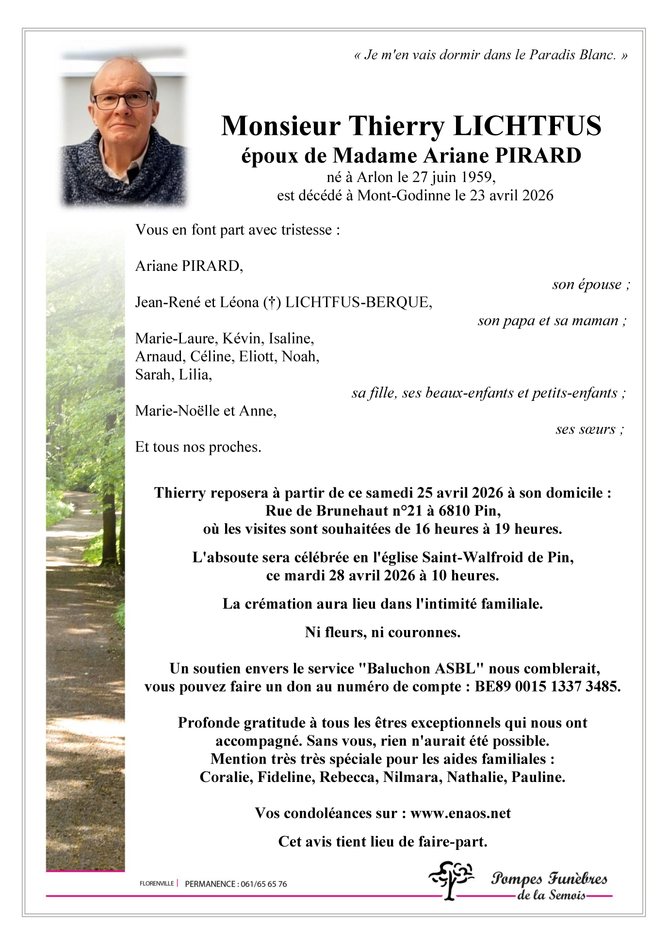 Avis de décès de Monsieur Thierry LICHTFUS