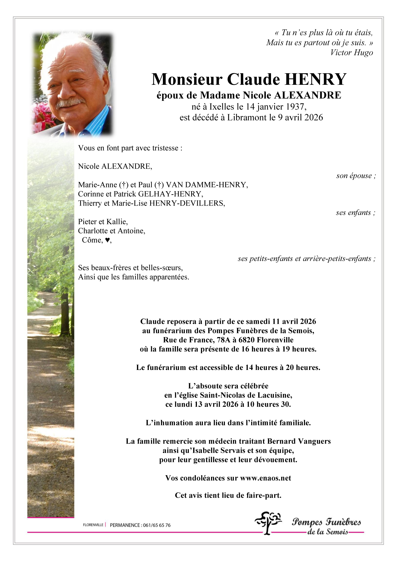 Avis de décès de Monsieur Claude HENRY