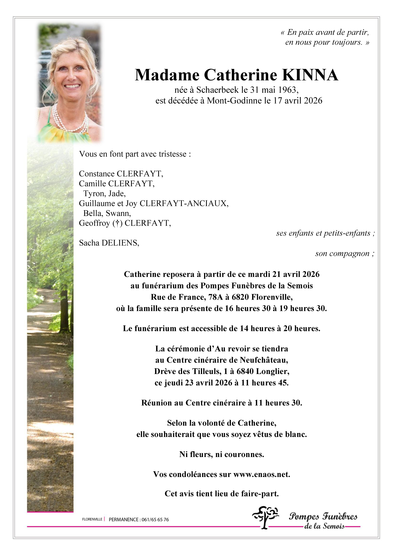 Centre cinéraire de Longlier le jeudi 23 avril à 11 heures 45