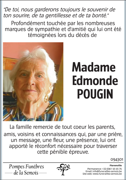 Décédée à Florenville (6820) le samedi 20 septembre 2025 à l'âge de 97 ans