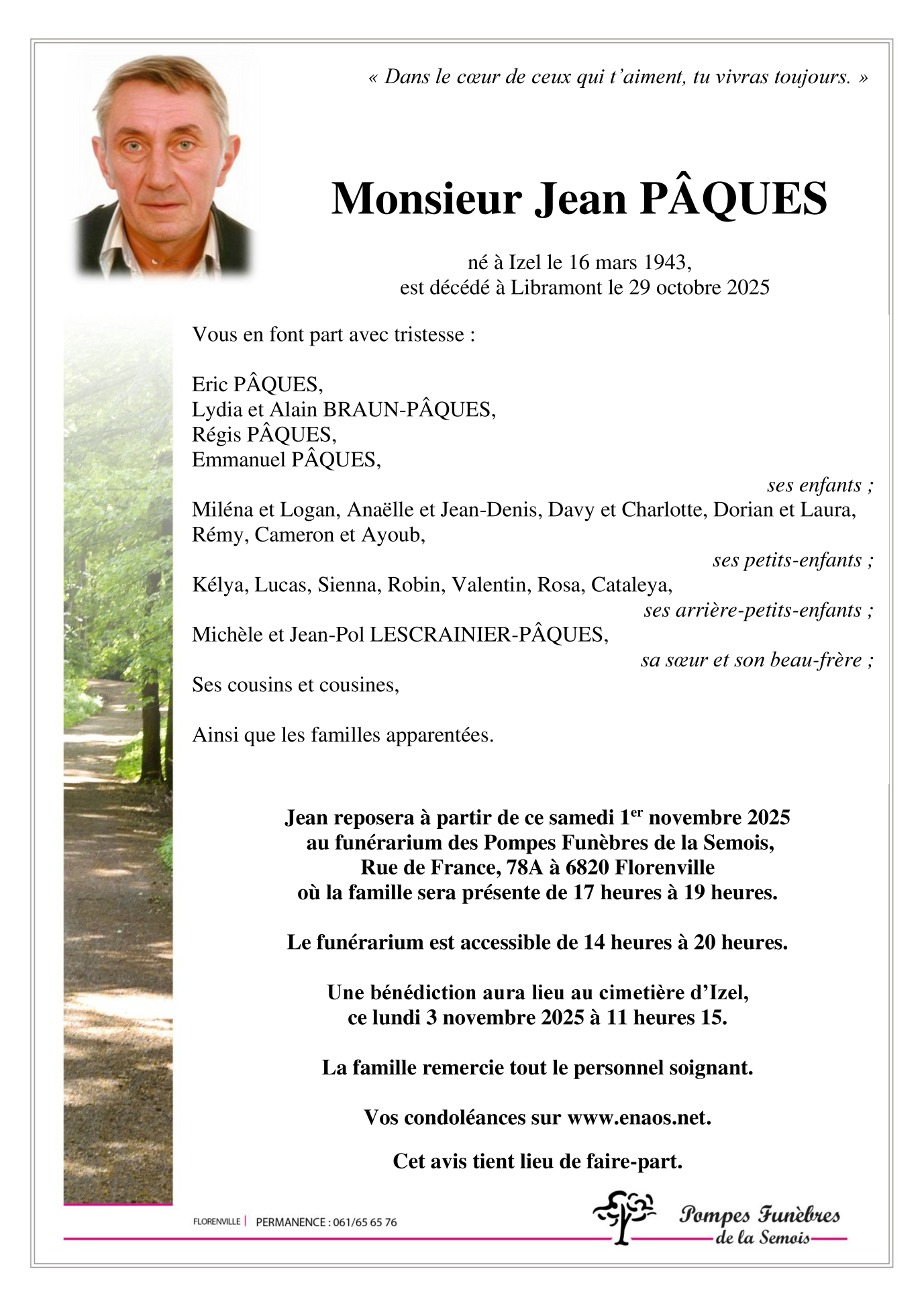 Décédé à Libramont-Chevigny (6800) le mercredi 29 octobre 2025 à l'âge de 82 ans
