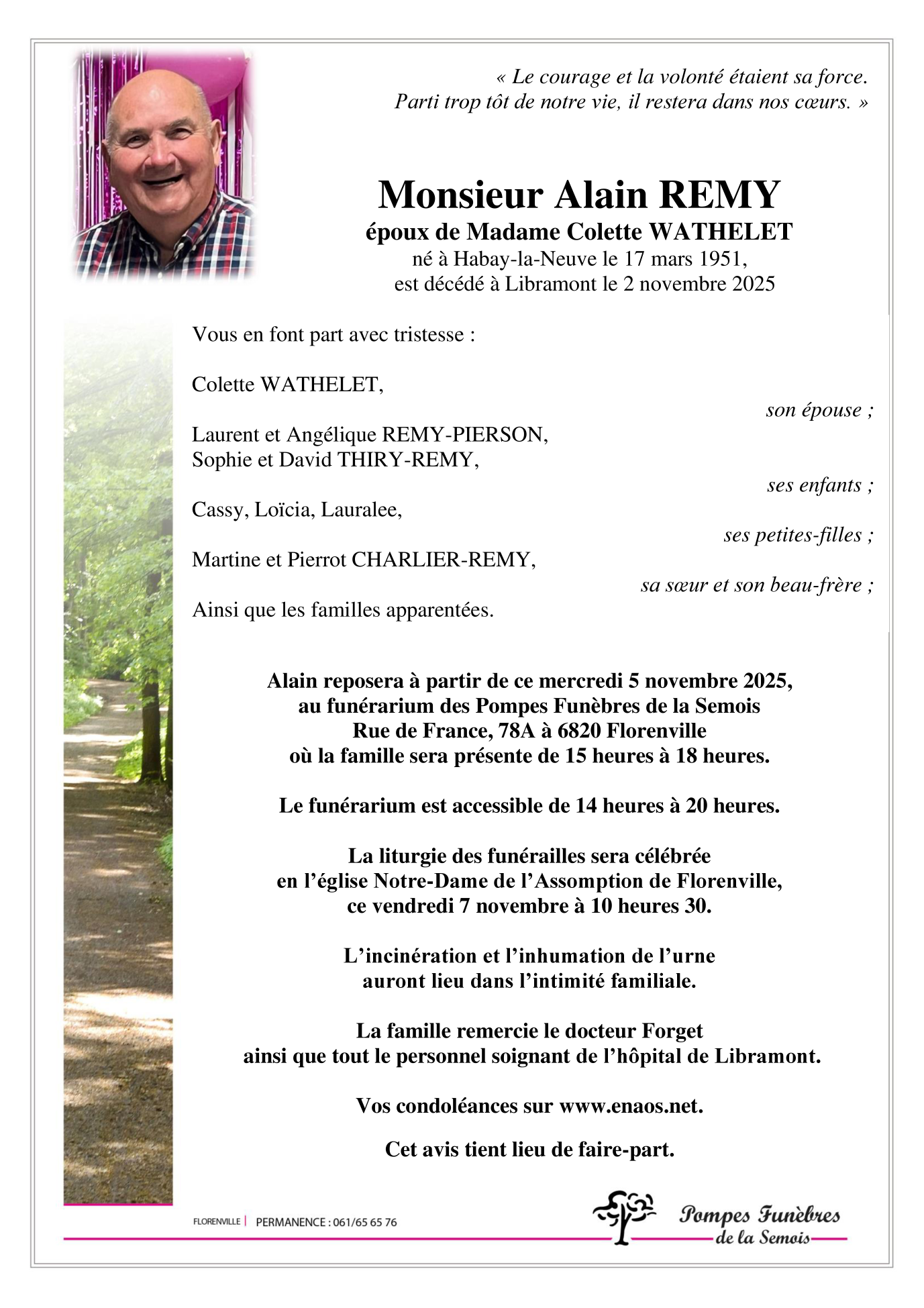 Décédé à Libramont-Chevigny (6800) le dimanche 2 novembre 2025 à l'âge de 74 ans