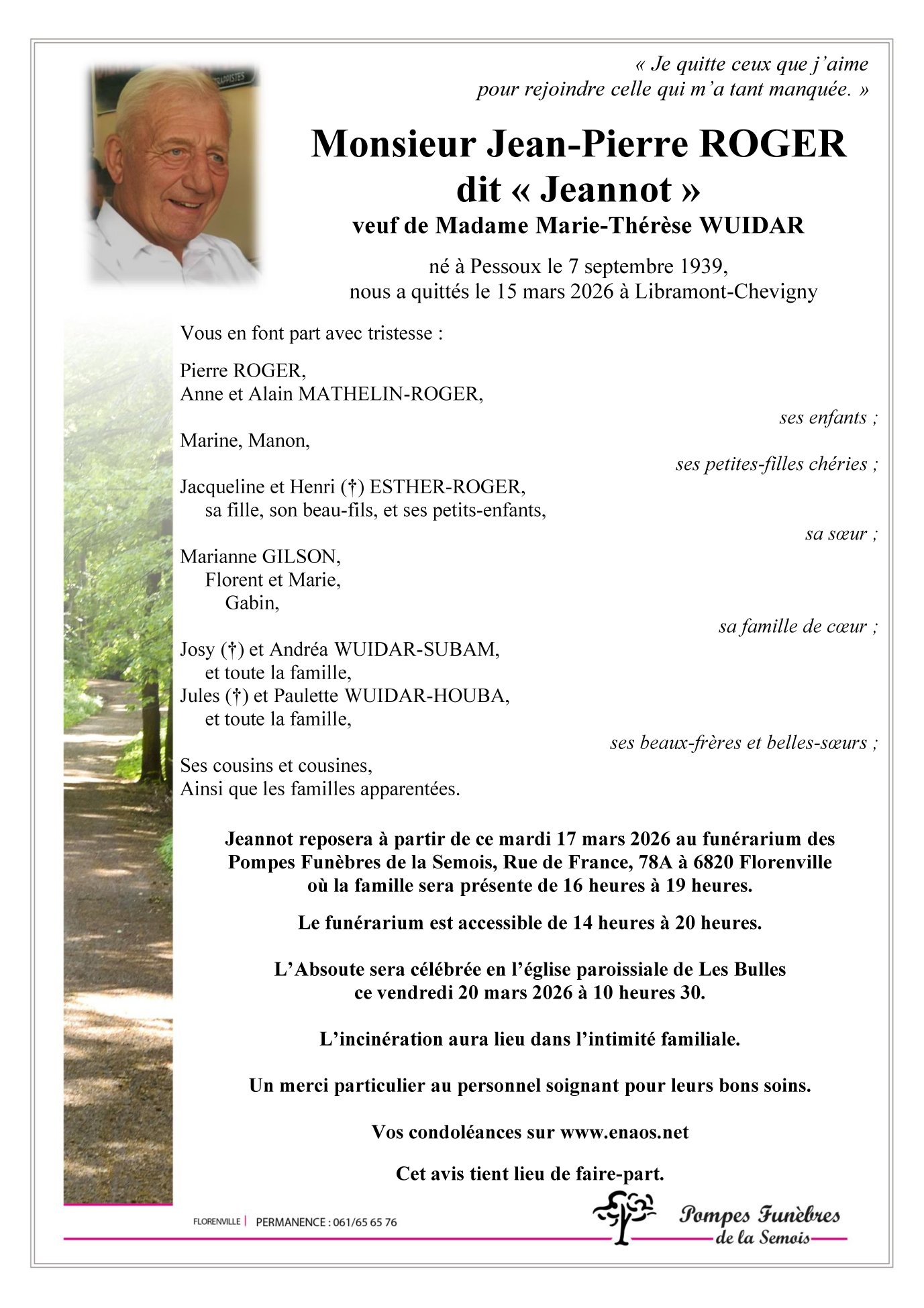 Veuf de Madame Marie-Thérèse WUIDAR