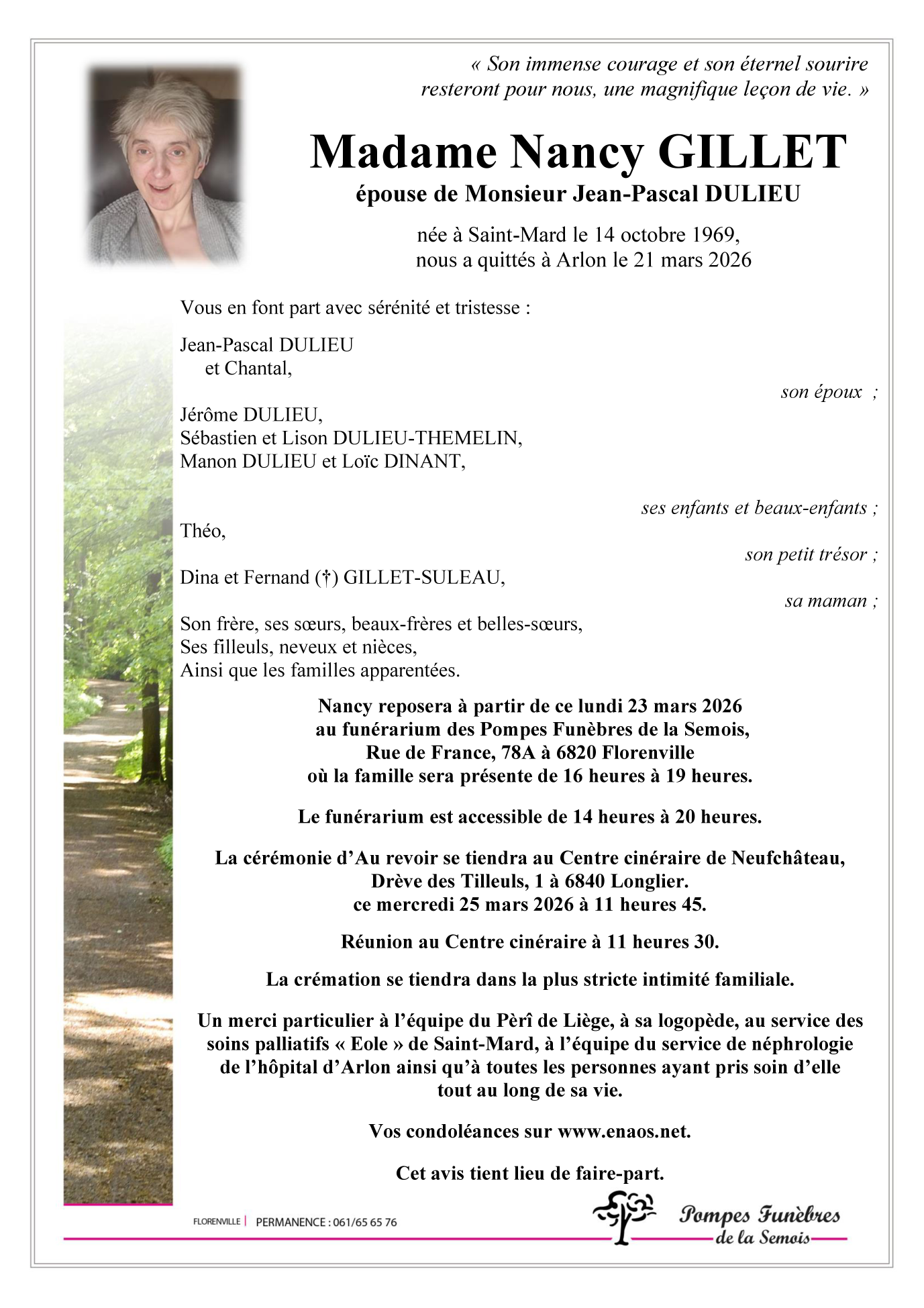 Décédée à Arlon (6700) le samedi 21 mars 2026 à l'âge de 56 ans